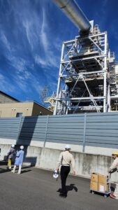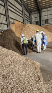 実際の施設内では、社長さんの講座を受けたあと、木質チップの山、燃焼炉から発電タービン、などを順に見学しました。敷地並ぶ設備に圧倒されつつ、木の香りがほんのり漂う空気の中で、自然と人との共生を感じました。